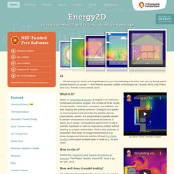 What is it? Based on computational physics research (, , ), Energy2D is an interactive, visual multiphysics simulation program that models all three modes of heat transfer—conduction, convection, and radiation, and their coupling with particle dynamics. ... Content Retrieval